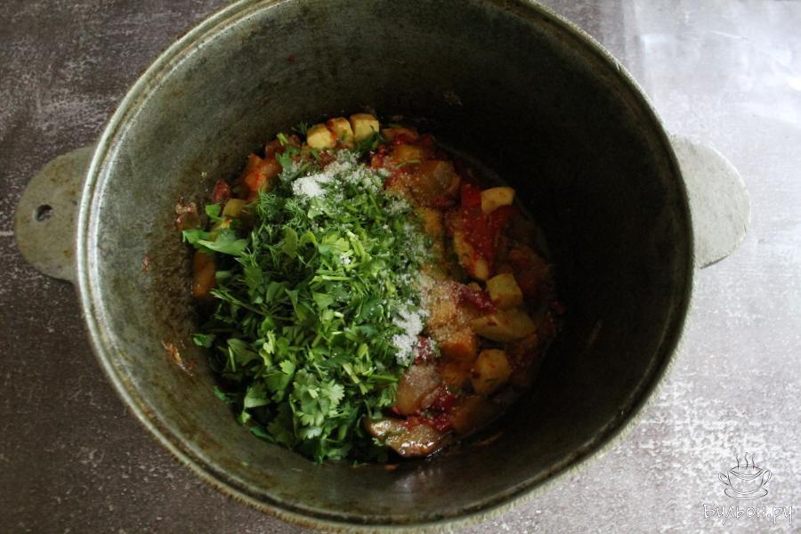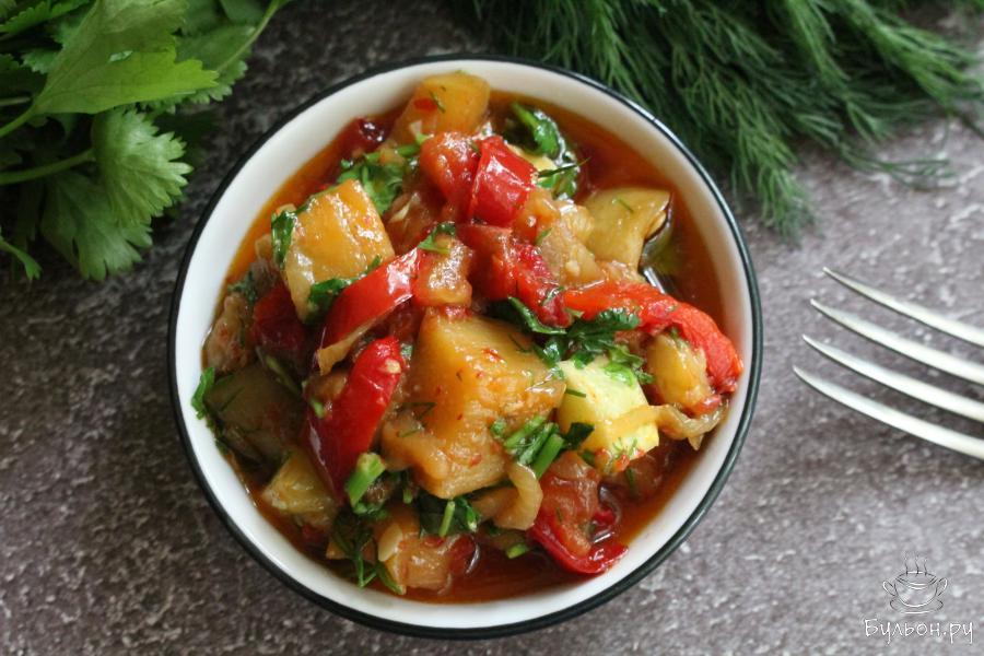 Икра из кабачков и баклажанов в казане по-восточному - порадует любителей блюд из баклажанов. Икра получается яркая, насыщенная, сочная и вкусная. Такая икра вкусная как в горячем, так и в холодном виде. Икра подойдет не только для повседневного стола, но и для постного и вегетарианского меню. Зелень для приготовления выбирайте ту, которую любите, но зелени в эту икру нужно добавить побольше. Болгарские перцы для этой икры нужны именно красные, они делают икру ярче.
