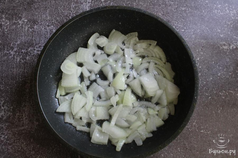 1. Лук почистить, промыть и мелко нарезать. На сковороде разогреть масло и обжарить лук до мягкости.