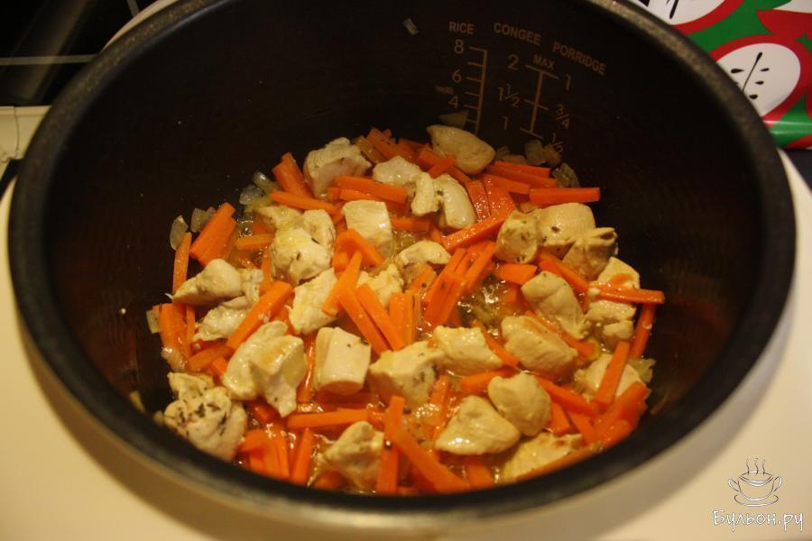 Плов из курицы, приготовленный в мультиварке - одно из самых простых и быстрых блюд для обеда или ужина, его удобно брать с собой на работу. Куриное мясо само по себе готовится быстро, а мультиварке это еще и проще. Ничего не пригорит, рис получится равномерно проваренным, и плов гарантированно приготовится за отведенное время. А пока плов готовится под чутким контролем мультиварки, можно приготовить к нему салат из свежих овощей или заниматься своими делами. Чтобы рис наверняка получился рассыпчатым, лучше использовать пропаренный. Плов из курицы, как ни странно, хорошо сочетается с соевым соусом, в этом случае лучше не досаливать и со свежими овощами. Чтобы плов получился более диетическим, при обжаривании к еще холодному маслу добавьте 2 столовые ложки воды, а рис можете заменить на булгур.