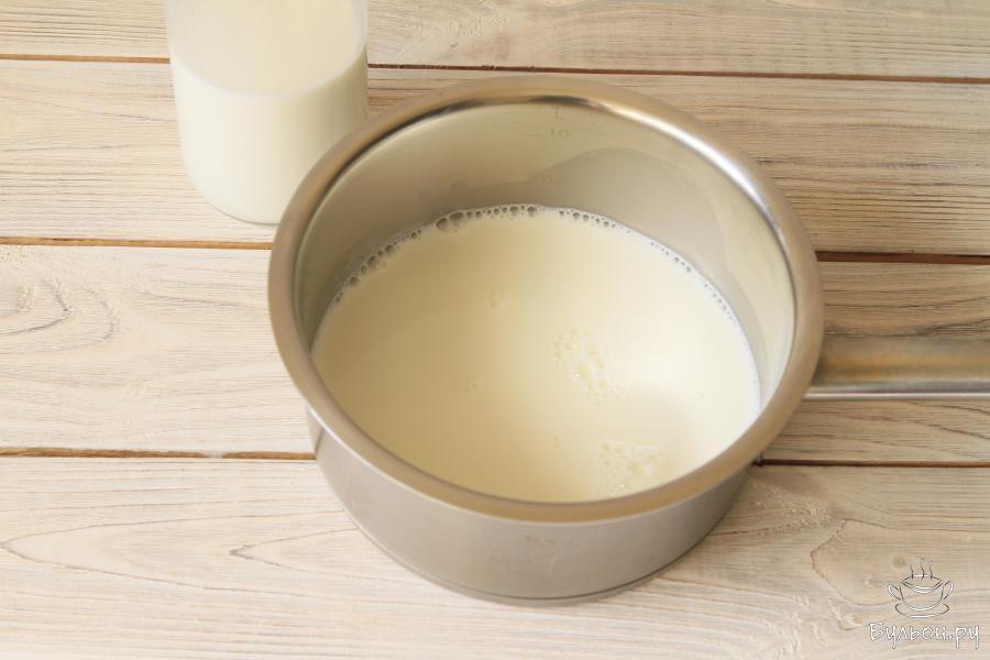2. В сотейник или в небольшую кастрюлю переливаем молоко и доводим его до кипения на среднем огне. По желанию молоко можно разбавить водой 1:1