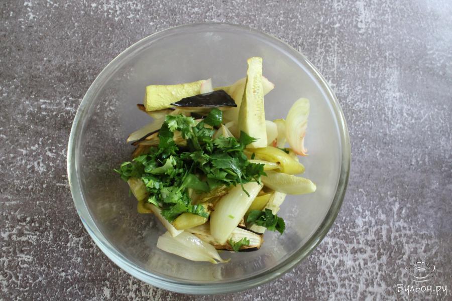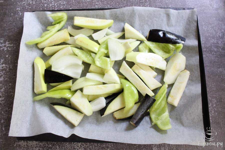 4. Выложить овощи на противень и запекать их до мягкости в разогретой до 180С духовке. Овощи можно переворачивать, чтобы они запекались равномерно.