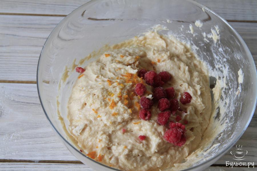 6. На этом этапе добавляем любимые фрукты или ягоды (все зависит от вашего вкуса, я добавила малину и персик) и цедру лимона.