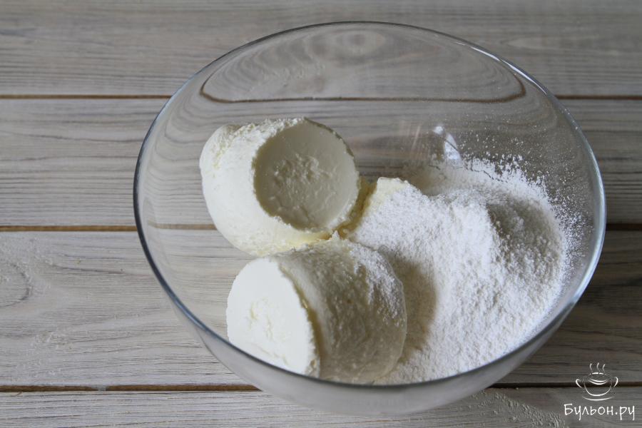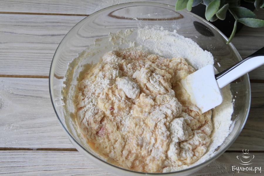 4. В отдельную чашу просеиваем муку и добавляем в нее разрыхлитель. Сухие ингредиенты хорошо перемешиваем между собой.