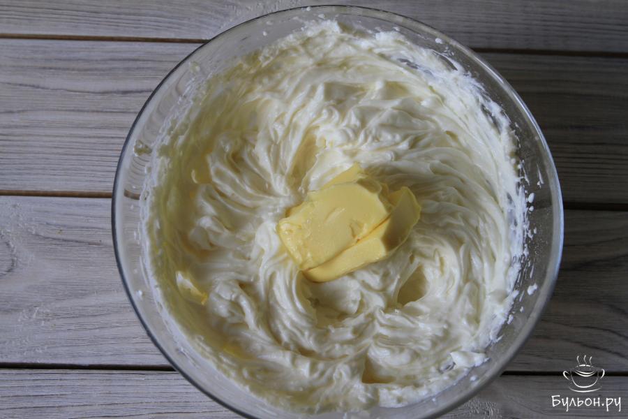 1. Торт готовится в два этапа. Сначала выпекаются коржи. Для начала в чаше необходимо взбить 330 гр мягкого сливочного масла с 330 гр сахара.