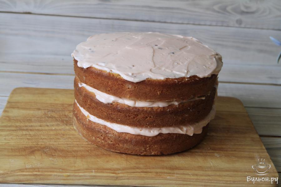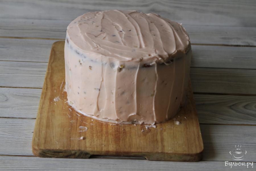 15. Остатки крема чиз распределяем по бокам и верху торта. Отправляем торт в холодильник на 6-8 часов.