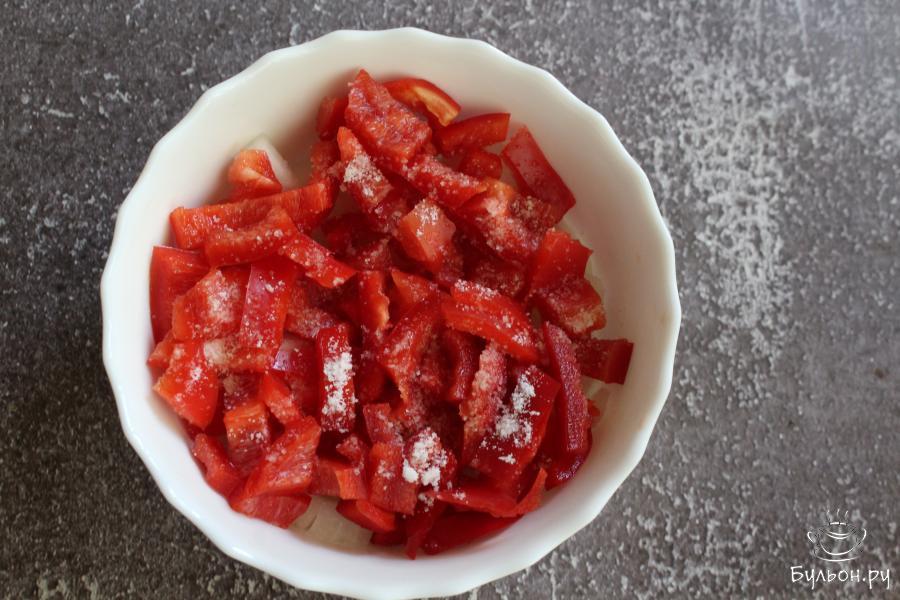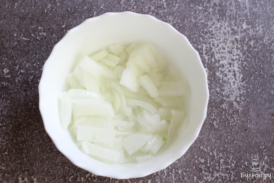 1. Лук почистить, промыть и мелко нарезать. В порционную формочку для запекания влить масло и выложить лук.