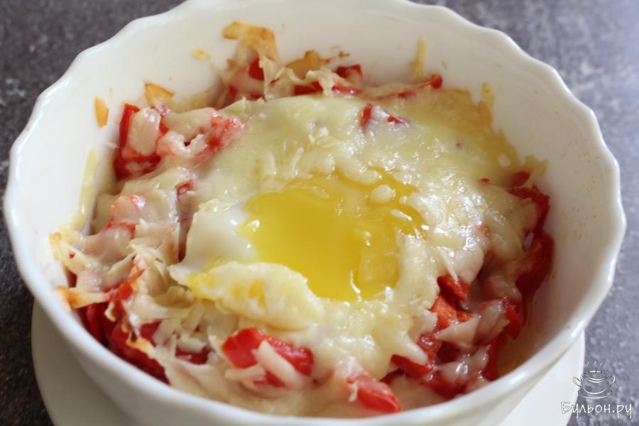Порционная яичница в духовке с овощами и сыром - готовится не очень быстро, но результат вас порадует. Яичница получается аппетитная, она лежит на сочной овощной подушке. И благодаря именно этой овощной подушке, желток остается полужидким, несмотря на долгое время запекания. Эта яичница насыщенная, вкусная, необычная и яркая. Если вы хотите разнообразить привычные завтраки из яиц, то обязательно попробуйте приготовить и такую яичницу тоже.
