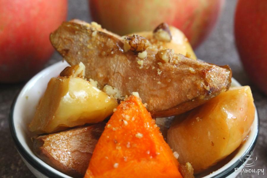 Вегетарианский десерт из запеченной тыквы, яблок и груши - отлично подойдет для постного, вегетарианского меню или если вы просто хотите отдохнуть от каллорийных сладостей. Этот десерт полезный, легкий, сочный и вкусный. Количество ингредиентов всегда можно поменять в пользу любимого, добавить больше груш или яблок, тыквы поменьше или наоборот. Если вам не хочется делать крошку из печенья, всегда можно обойтись только измельченными грецкими орехами или смесью орехов.