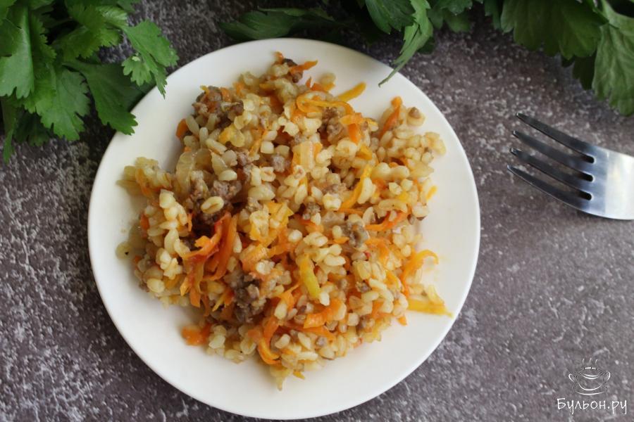 Если вам хочется приготовить простое и сытное блюдо, то обратите внимание на этот рецепт. Булгур с мясным фаршем и овощами в казане, как раз такое блюдо. Эта мясная каша получается насыщенная, ароматная, вкусная и нежная. Блюдо готовится просто, количество овощей можно всегда регулировать по своему вкусу. В готовое блюдо можно добавить мелко нарезанную любимую зелень, это по желанию. Фарш для приготовления берите тот, который вы любите.