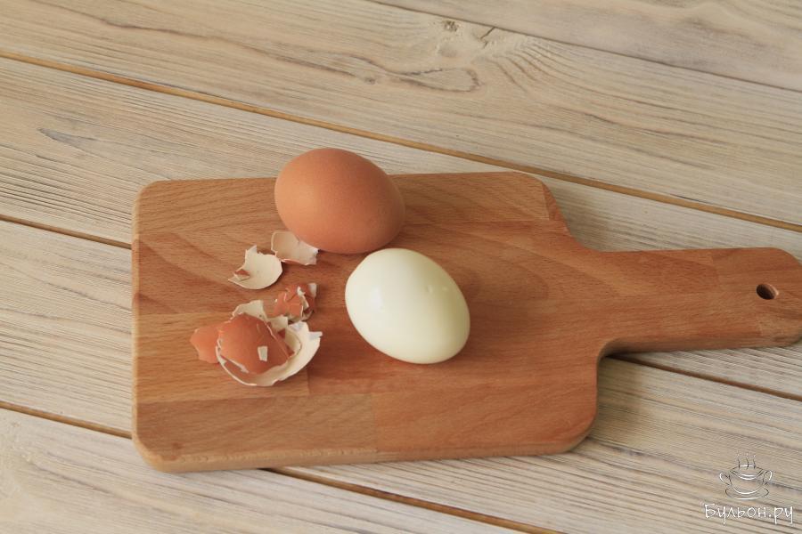 1. Тесто на трюфели замешивается из двух яиц, а точнее из двух желтков. Поэтому яйца необходимо отварить в слегка подсоленной воде, остудить и очистить от скорлупы.
