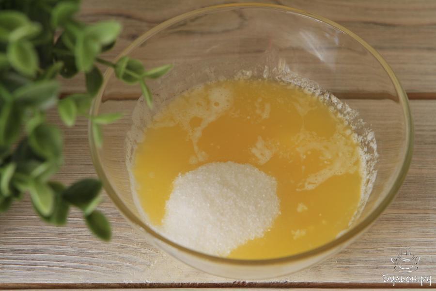 4. Добавить в него 50 гр сахарного песка. Если вы любите выпечку послаще, то сахара можно добавить чуть больше.
