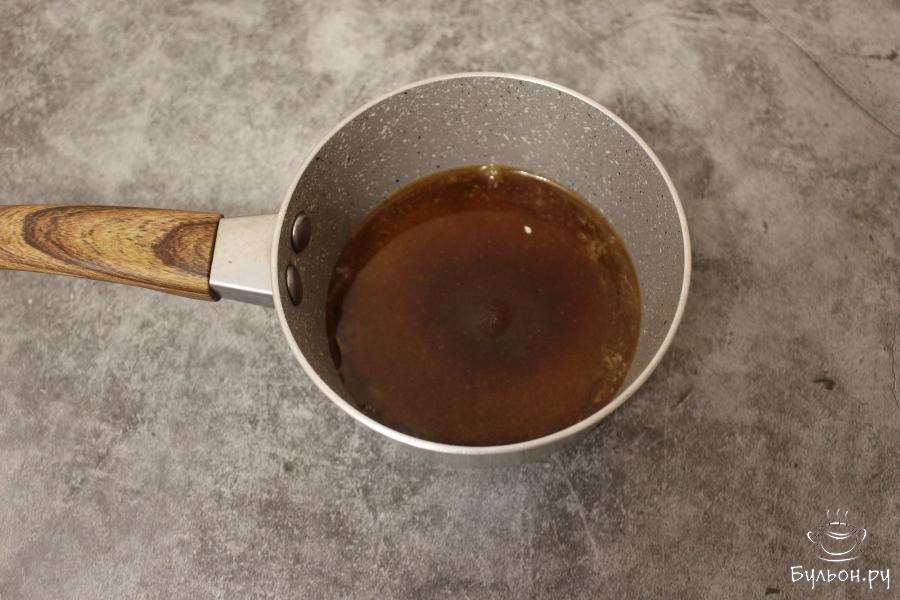 5. В ковшике смешайте воду, мед и коричневый сахар, поставьте на огонь и дайте сиропу закипеть, сахар должен полностью раствориться. Получившийся сироп перелейте в миску с орехами и сухофруктами. Все очень тщательно перемешайте.