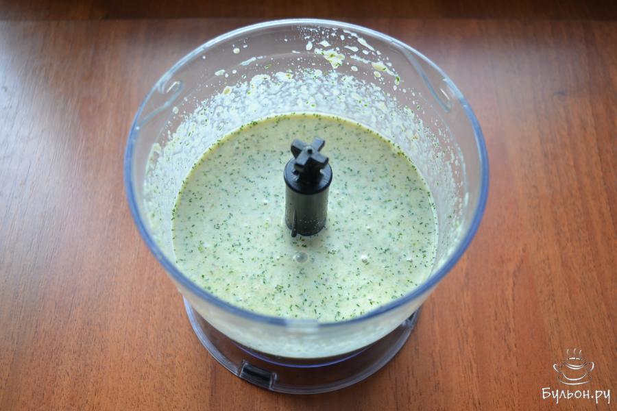 6. Все еще раз взбить в чаше до однородного состояния или пюрировать огуречный гаспачо погружным блендером.