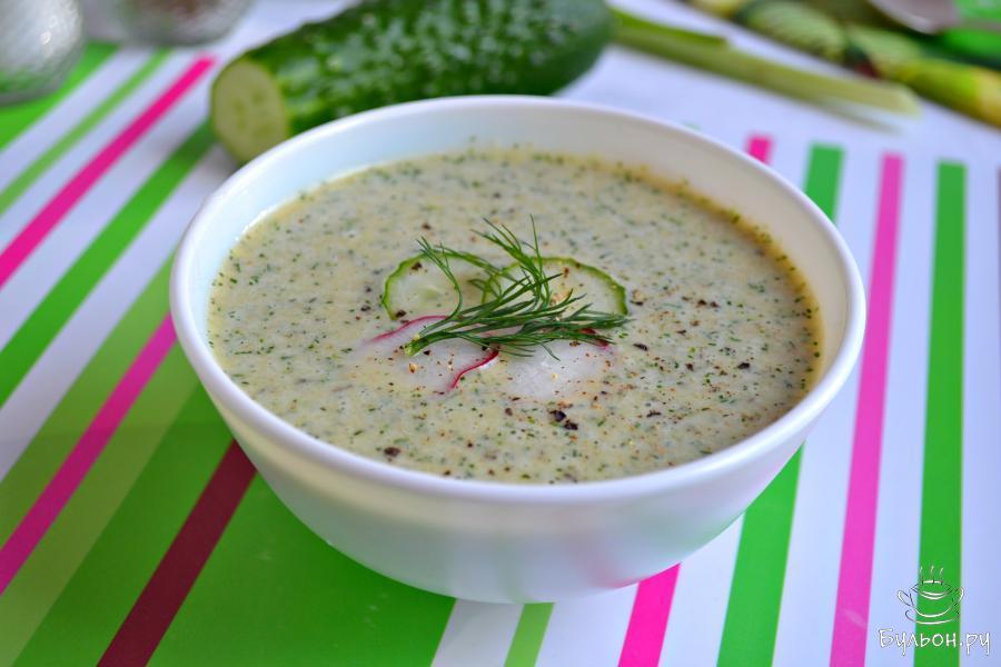 Гаспачо - замечательное испанское холодное и освежающее первое блюдо, которое готовится преимущественно из свежих помидоров или с добавлением их. Также, этот суп можно приготовить из любых сырых овощей. Предлагаю вам отличный вариант холодного супа для жарких дней - огуречный гаспачо, который получается еще очень вкусным и полезным. В рецепте используется домашний йогурт, если его нет, можно заменить кефиром с невысокой жирностью. По-желанию этот суп можно сделать острым, добавив в него немного перца чили.