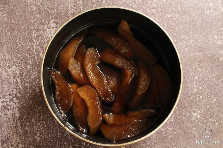 3. Выложить дольки груш в сироп и проварить варенье после закипания 6-8 минут. Убрать посуду с огня и оставить на пару часов. Через два часа повторить снова этот шаг, проварить варенье и оставить на пару часов.