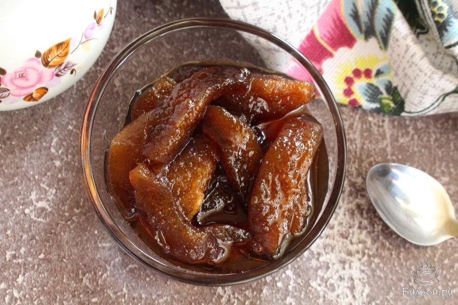 Варенье из груш дольками готовится не быстро, но достаточно просто. Такое варенье можно уварить до карамельного цвета и густого состояния, а можно оставить светлое, с более жидким сиропом. Выбирать вам, какой вариант варенья вам хочется получить. Варенье получается нежное, сладкое, а дольки груш остаются целые и не развариваются. Чтобы грушевые дольки точно были целые, для приготовления этого варенья выбирайте не очень удачные груши, твердые, пресные или кислые. Даже самые неудачные и твердые груши станут вкусные в грушевом варенье.