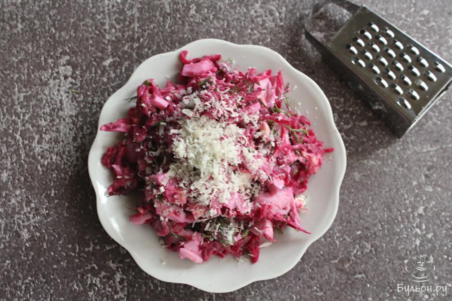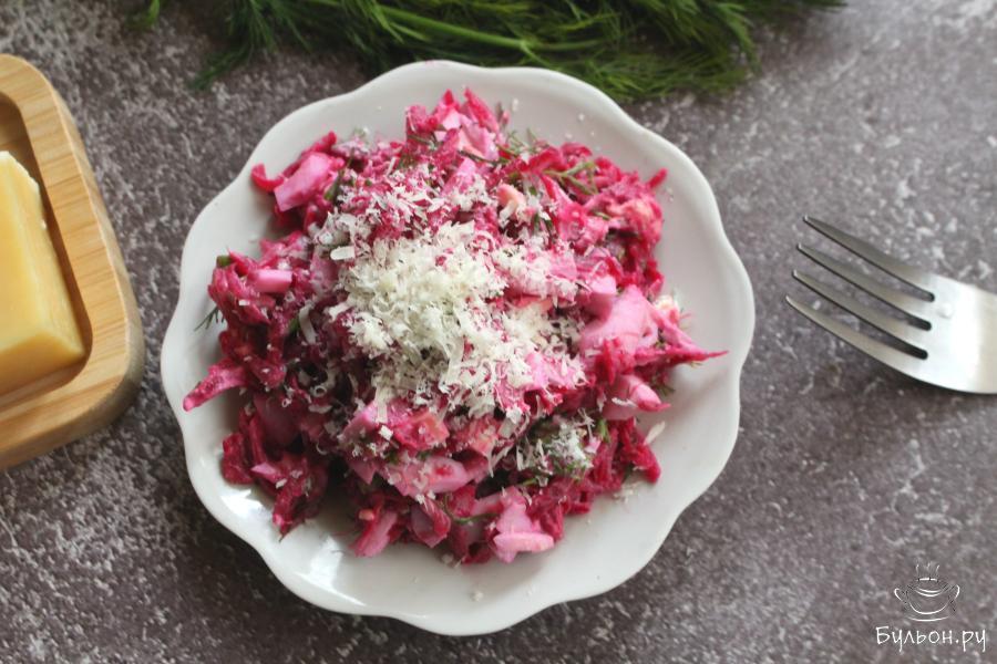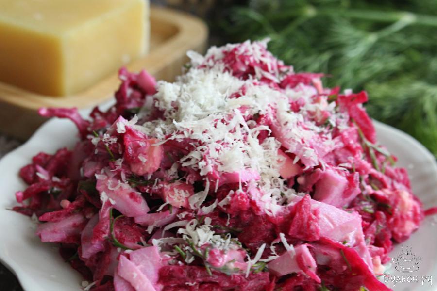 Любителям блюд из свеклы предлагаю приготовить простой, но очень вкусный свекольный салат с яйцом и сыром Пармезан. Такой салат порадует вас своим аппетитным видом, он красивый и яркий, а на вкус он сочный, нежный, легкий и полезный. По желанию салат можно заправить не майонезом, а сметаной. Зелень для приготовления выбирайте свою любимую. Этот красочный и аппетитный салат можно предложить к обеду или ужину.
