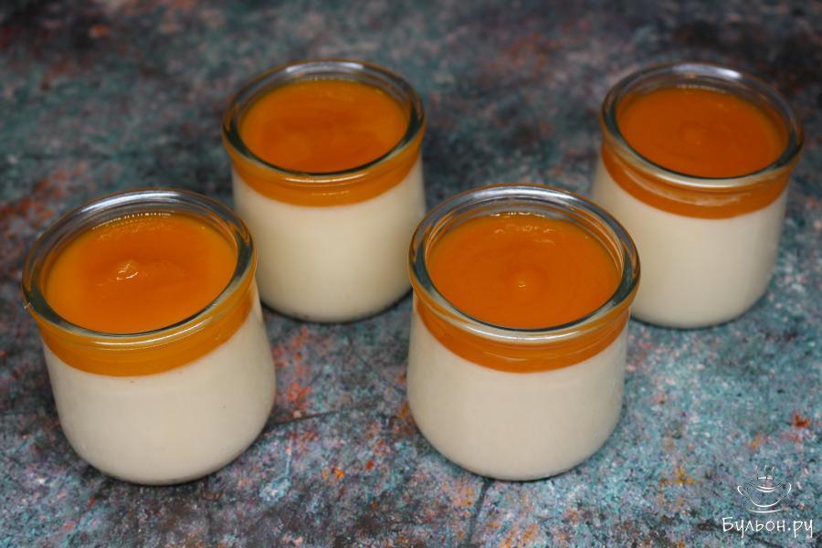 4. Возьмите прозрачные баночки или креманки, перелейте в них панакоту. Поставьте в холодильник, минимум на час, сливки должны застыть.