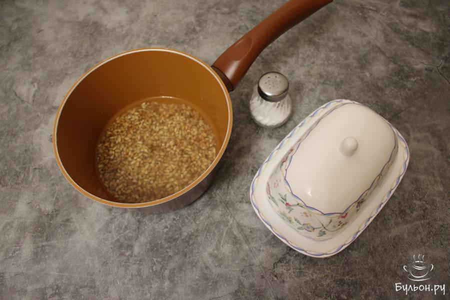 1. Залейте полбу водой и поставьте на огонь, варите на медленном огне под крышкой 20-25 минут. Затем добавьте 5 грамм сливочного масла, посолите и перемешайте, дайте настояться каше еще примерно 20 минут.