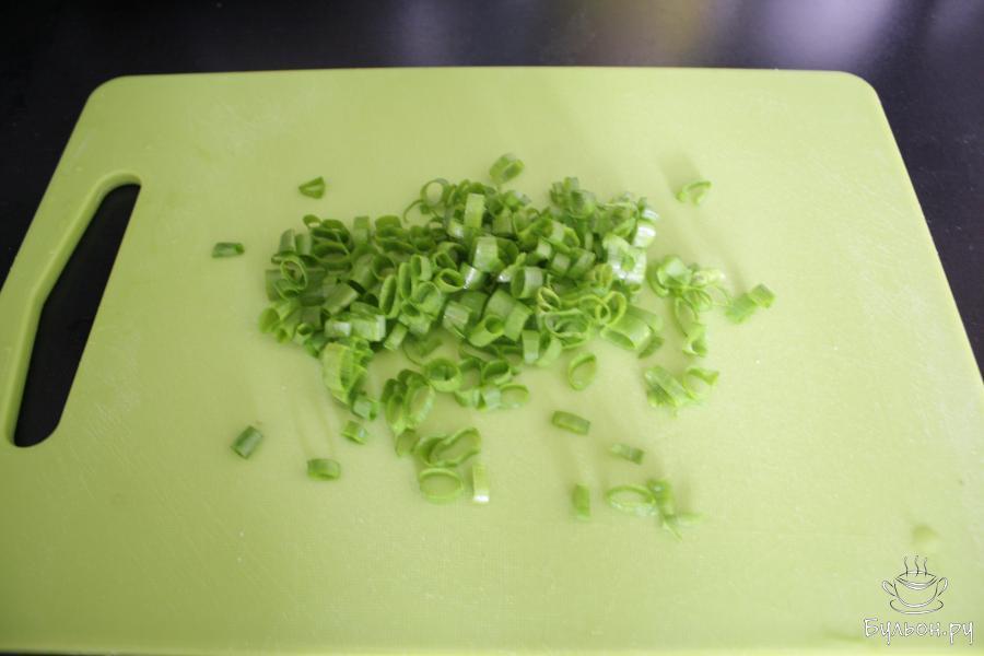 2. Измельчить любимую зелень, в данном случае, зеленый лук. Для детей лучше использовать укроп или исключить вовсе.