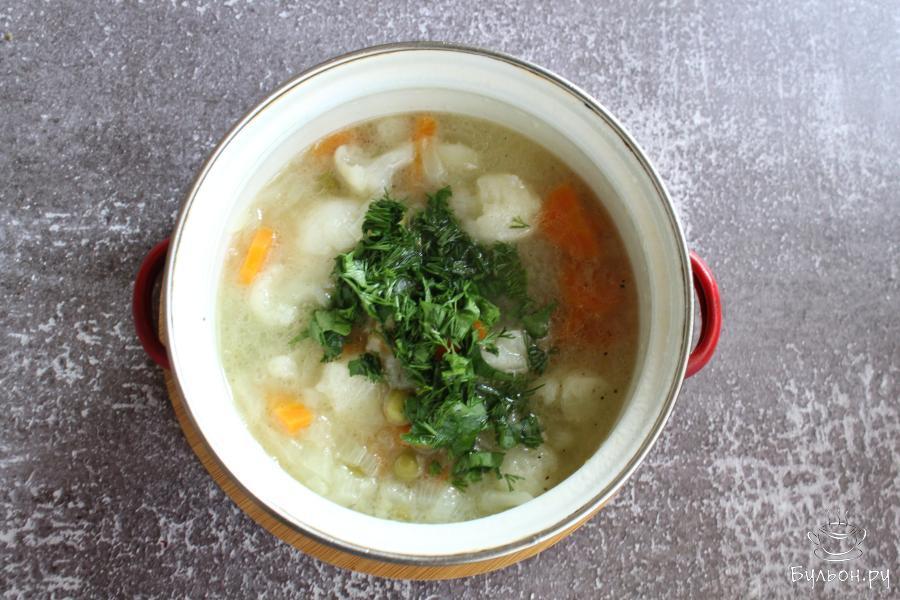 Постный суп с цветной капустой и зеленым горошком - отлично подойдет не только для постного и вегетарианского меню, но и для разгрузочных дней. Такой суп готовится на скорую руку из доступных продуктов. Суп получается ароматный, легкий, вкусный и полезный. Так как в супе нет мясного и жирного, суп вкусный как горячий, так и холодный. Овощи можно всегда добавить по своему вкусу: сделать меньше или больше цветной капусты, лука, моркови. Если вы любите супы с картофелем, то он тоже сюда замечательно подходит.