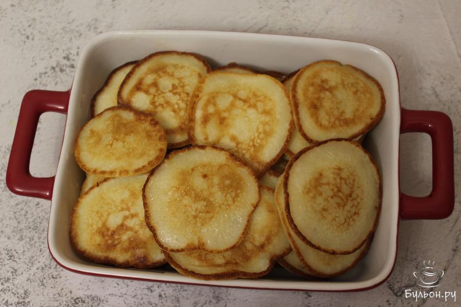 5. Оладьи переложите на тарелку и подайте на стол с любимыми добавками, например, сметаной, вареньем, ягодами, сгущенным молоком.