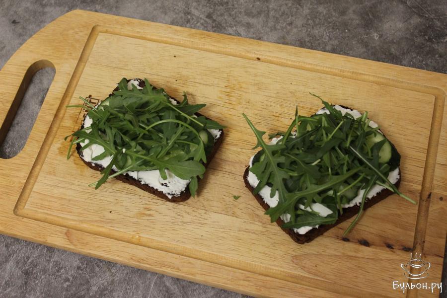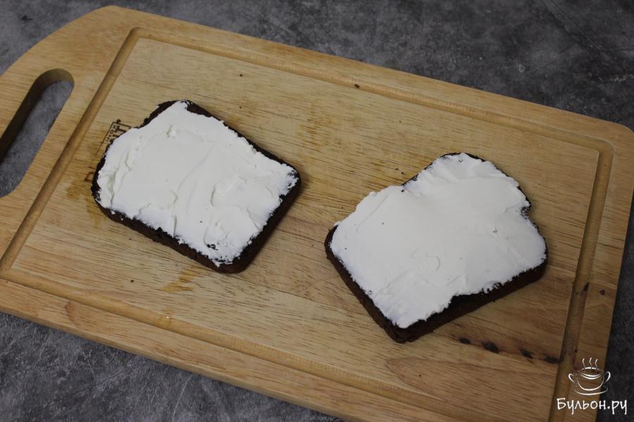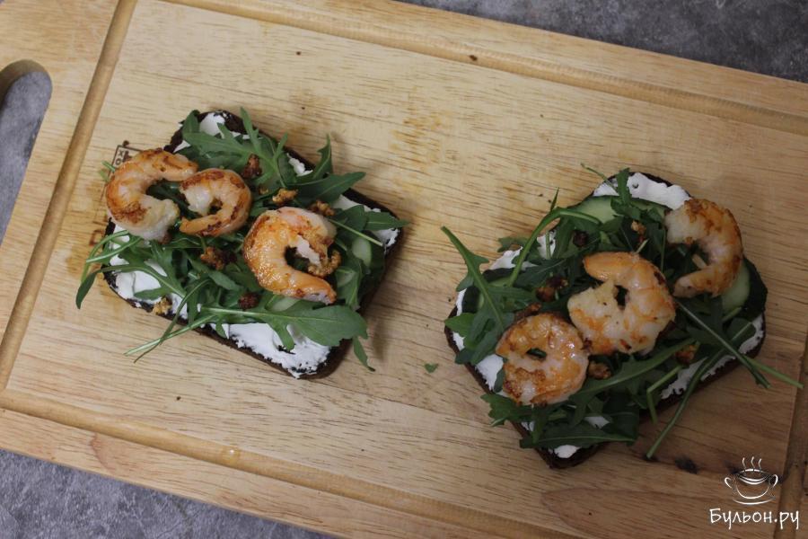 Брускетты на черном хлебе с креветками