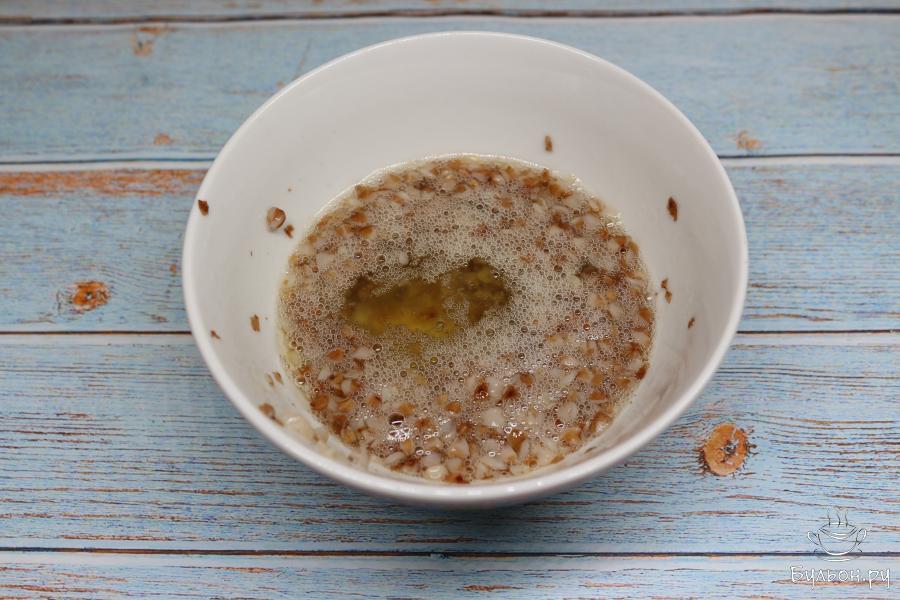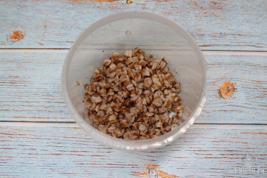 1. Заранее сварите гречу в подсоленой воде, согласно инструкции на упаковке. Для этого рецепта оставьте 2 столовые ложки.
