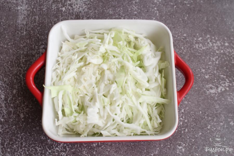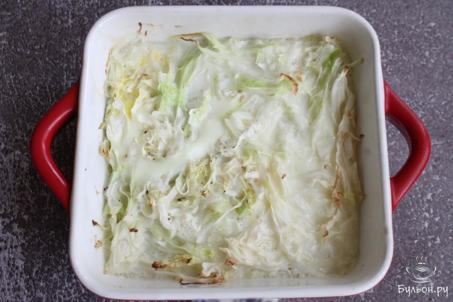 3. Выли воду в форму на капусту. Готовить капусту 10 минут в духовке, при температуре 180С. Достать форму, добавить перец по вкусу.