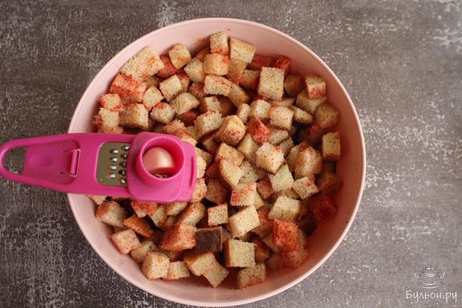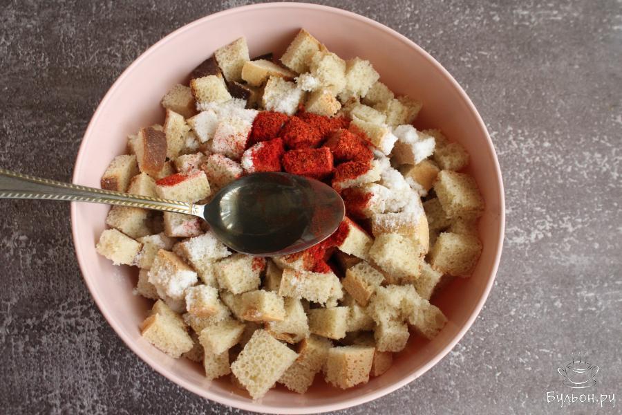 Острые сухарики из белого хлеба с чесноком - отлично подойдут для перекуса, как закуска к пиву или как лакомство, которое можно взять на пикник или прогулку. Такие сухарики можно всегда сделать на свой вкус, острее или, наоборот, менее острые, добавить больше чеснока или меньше, соли можно добавить больше. Готовятся сухарики на скорую руку. Очень удобно готовить такие сухарики, если у вас остался хлеб и уже начал черстветь, его самое время переработать в сухарики.