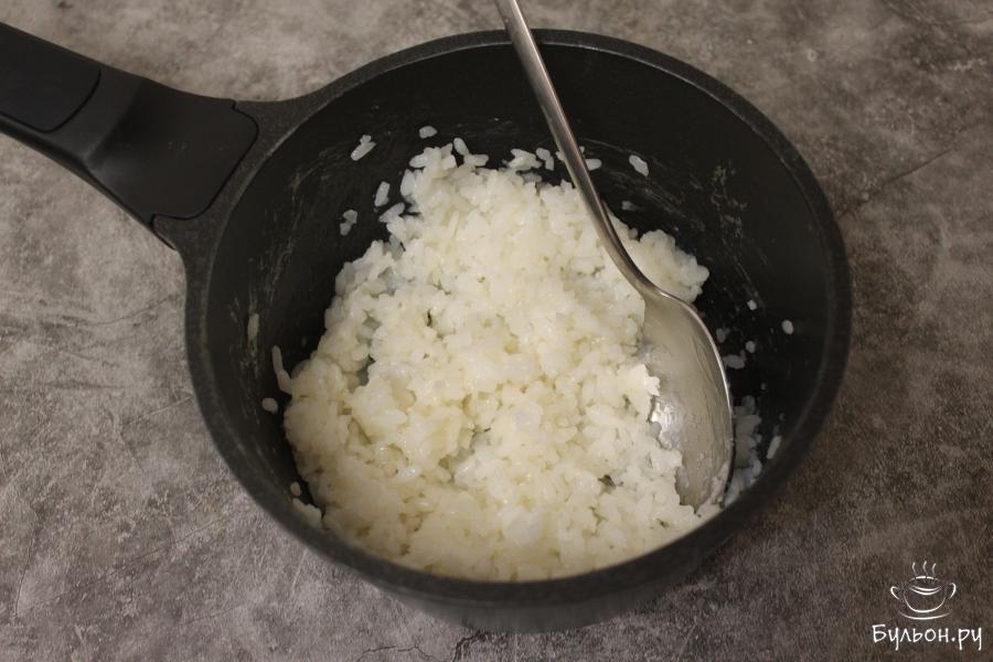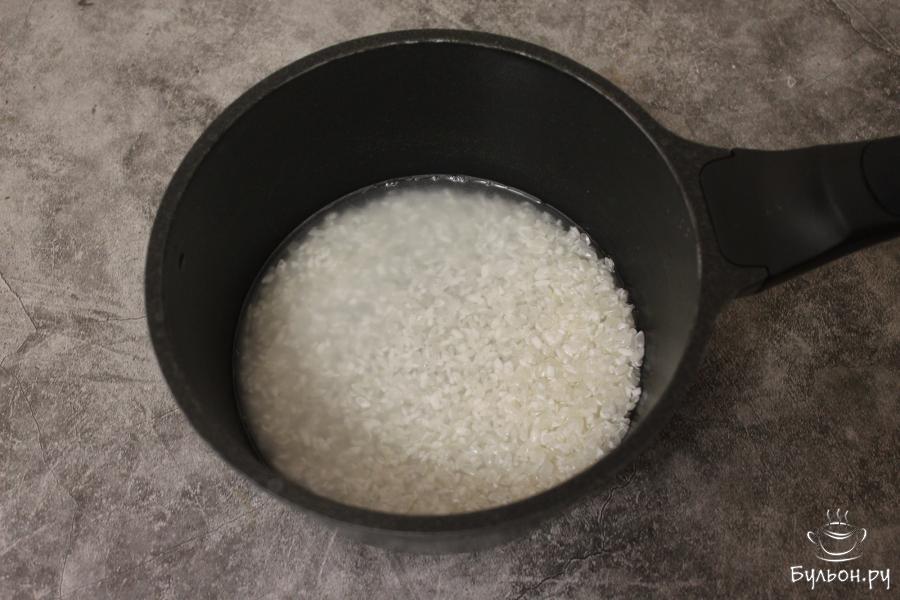1. Промытый рис выложите в ковшик, залейте водой и варите под закрытой крышкой в течение 15 минут после закипания. Затем снимите с огня и дайте еще в течение 10 минут дозреть рису.