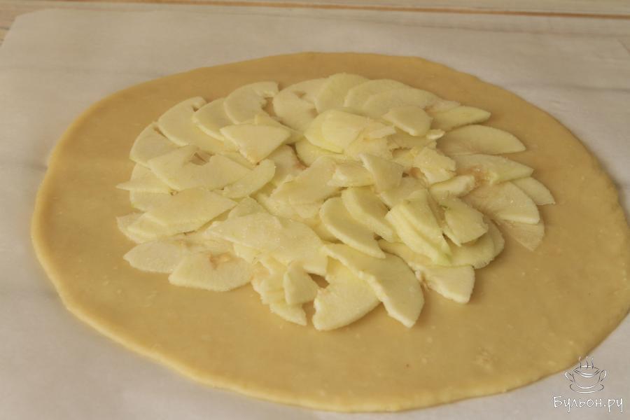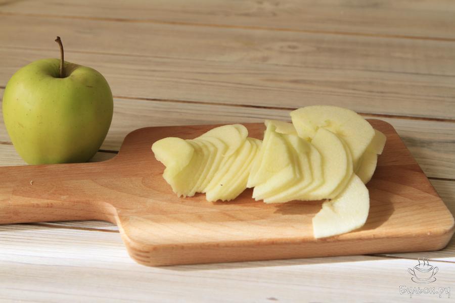5. Пока тесто отдыхает, займемся начинкой. Яблоки очистить от кожуры, удалить сердцевину и косточки. Нарезать на дольки небольшого размера.