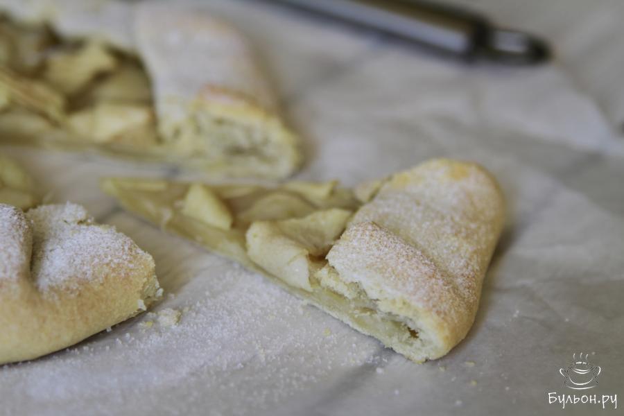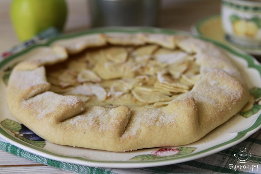 Галета с яблоками относится к категории быстрых десертов. Представляет она собой открытый пирог с яблочной начинкой. Тесто получается рассыпчатым, а начинка мягкой и в меру сладкой. Сладость кстати можно регулировать самостоятельно. А вот яблоки для начинки можно обжарить на сковороде с кусочком сливочного масла и медом, добавить корицу, сухофрукты и орехи, другими словами сделать начинку более насыщенной. Но мне нравится классический вариант галеты с яблоками. Подают галету как в теплом, так и холодном виде, температурный режим на вкус особо не влияет.