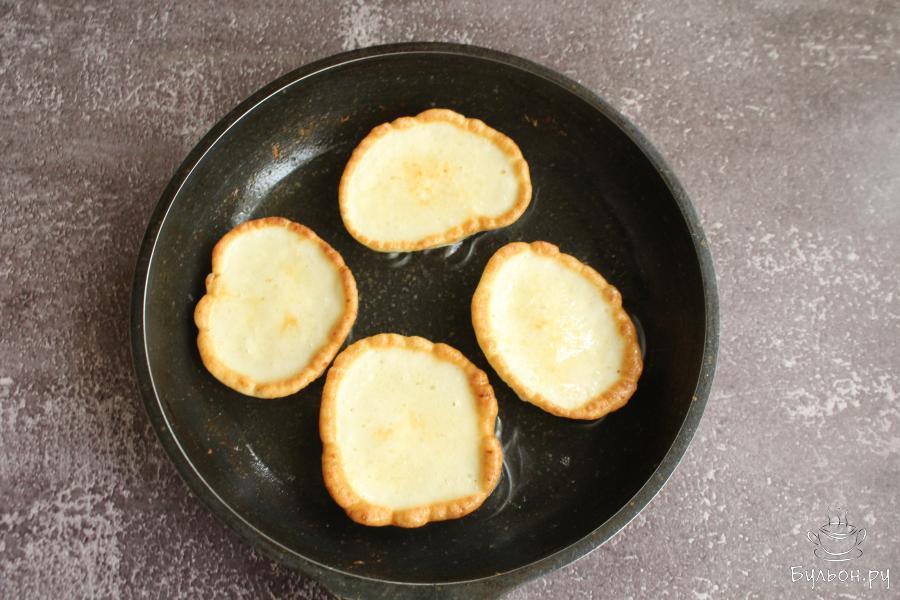 6. На сковороде разогреть масло, столовой ложкой выкладывать оладьи и жарить их на среднем огне до румяного цвета.
