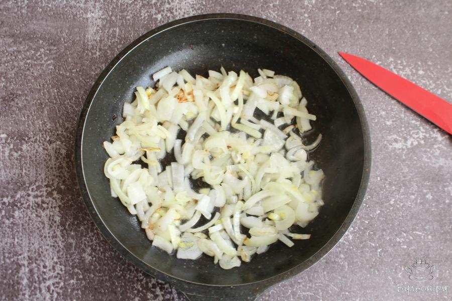 1. Лук почистить, промыть и мелко нарезать. На сковороде разогреть масло и обжарить лук до мягкости.