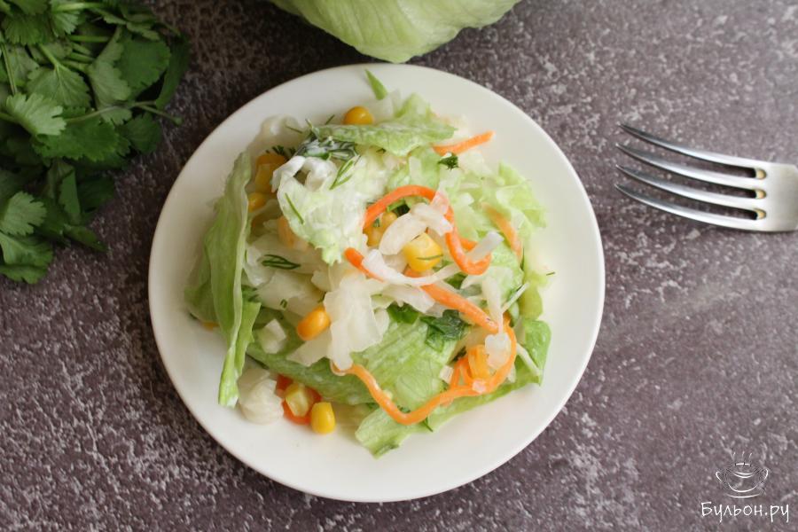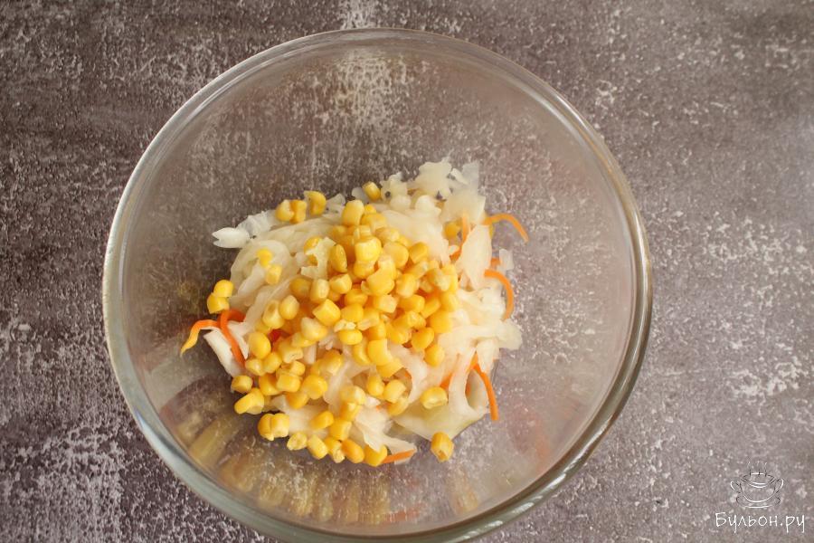 Салат из квашеной капусты с кукурузой и луком готовится на скорую руку. Если вы не хотите заправлять салат майонезом, то его можно заменить на ароматное растительное масло и тогда салат станет вегетарианский, постный. Зелень для приготовления выбирайте свою любимую. Если вам мало соли от майонеза, то салат можно, дополнительно, посолить по вкусу. Салат получается сочный, хрустящий, легкий, полезный и очень вкусный.