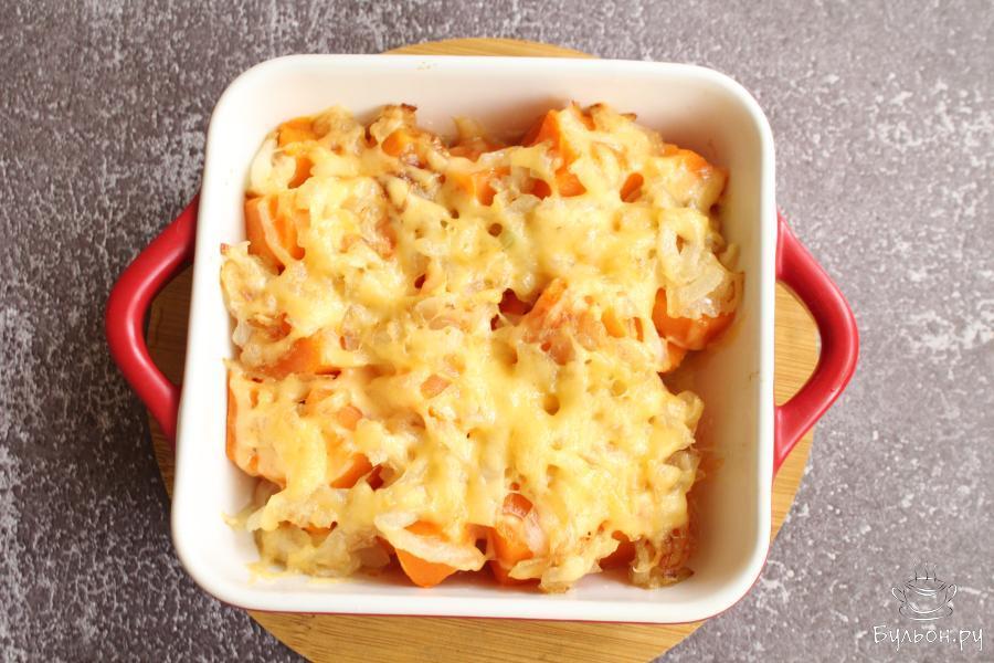 Запеченная тыква с луком и сыром в духовке понравится любителям блюд из тыквы. Это блюдо можно предложить как самостоятельное, а можно подать как гарнир. Тыква получается мягкая, сочная, а лук и сыр делают блюдо более сытным и насыщенным. Готовится такая запеченная тыква просто и быстро. По желанию, можно разнообразить это блюдо любимыми пряностями. Сыр для приготовления выбирайте любой твердый, который вы обычно используете.