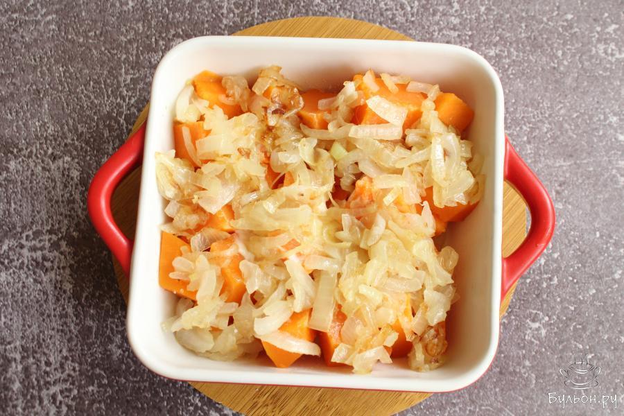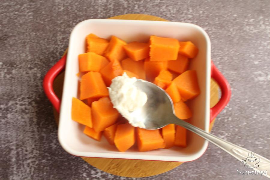 1. Тыкву почистить, нарезать кубиками и проварить 5 минут в кипящей воде. Откинуть тыкву на дуршлаг.
