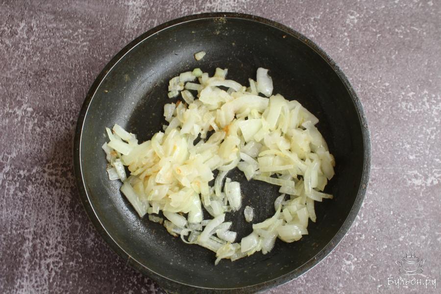 2. Лук почистить, промыть и мелко нарезать. Обжарить лук на сковороде с разогретым маслом до мягкости.