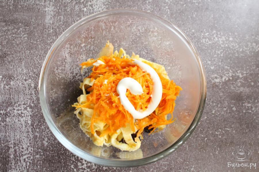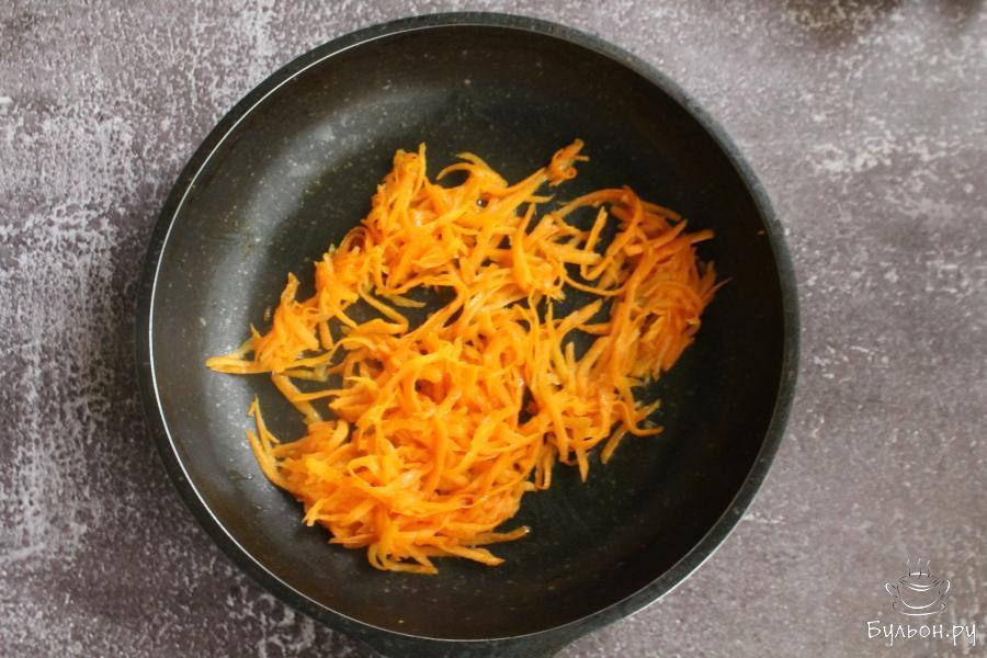 7. Морковь почистить, промыть и натереть на крупной терке. Обжарить морковь до мягкости на сковороде с оставшимся маслом.