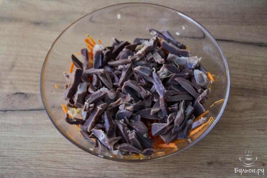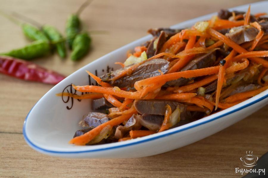 Салаты из субпродуктов кто-то любит и готовит, а кто-то - нет. Я очень люблю блюда из субпродуктов и стараюсь готовить из них, как можно чаще. Сегодня у меня салат в азиатском стиле - из вареных куриных желудочков и сердечек. Для салата можно использовать только желудочки или только сердечки, а можно вместе. Яркий пикантный вкус салату придает соевый соус и чеснок, свежая морковь придаст сочность и свежесть, а субпродукты - сытость. Салат получается очень вкусный, сытный, пикантный.