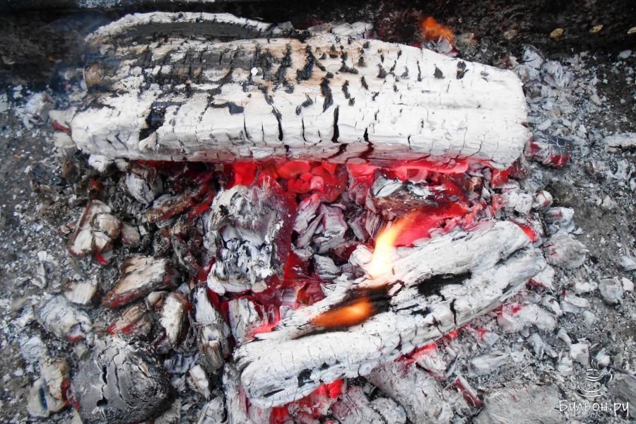 4. Положить подготовленные шампура на мангал и жарить на подготовленных углях, все время покручивая.