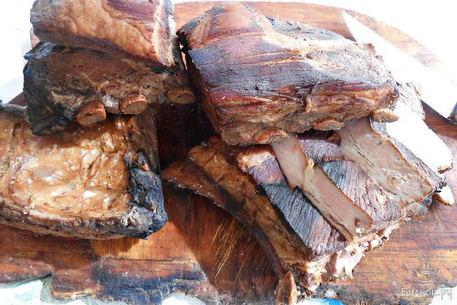 Нежнейшая варено-копченая свиная грудинка удивит ваших любимых своим ароматом и вкусом. Процесс приготовление длительный, но не сложный: для начала грудинку нужно отварить, затем мариновать, а уже после коптить. Выбрала домашнюю свиную грудинку для приготовления. Количество соли и сахара указано на 2 литра воды. Не бойтесь пересолить, грудинка возьмет столько соли, сколько ей нужно. Хранить нужно в холодильнике до 10 дней. Самая вкусная грудинка в холодном виде.