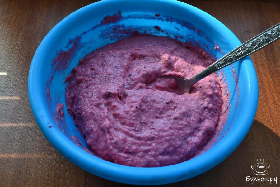 6. Ягодную смесь отправить в морозильник с довольно низкой температурой на 3-5 часов. Через 30 минут смесь следует хорошо перемешать ложкой, чтобы разбились образовавшиеся кристаллы льда. Далее, также поступать каждый час.
