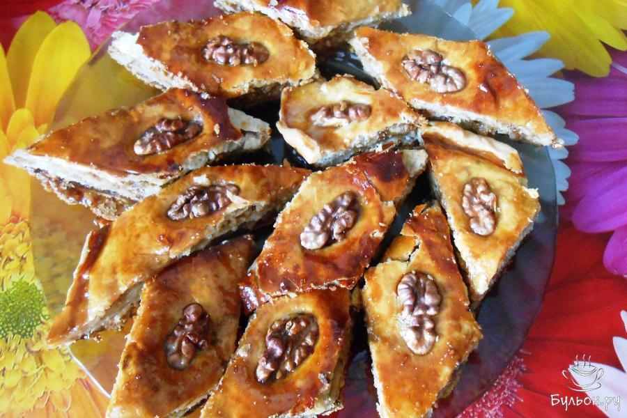 18. Вкусную медовую пахлаву с грецкими орехами по-восточному можно подавать к столу. Приятного аппетита.