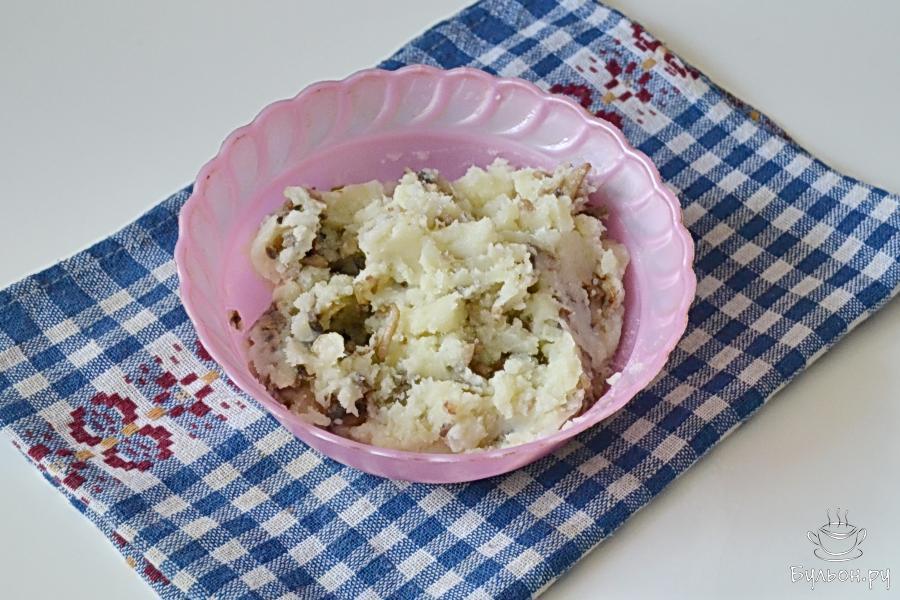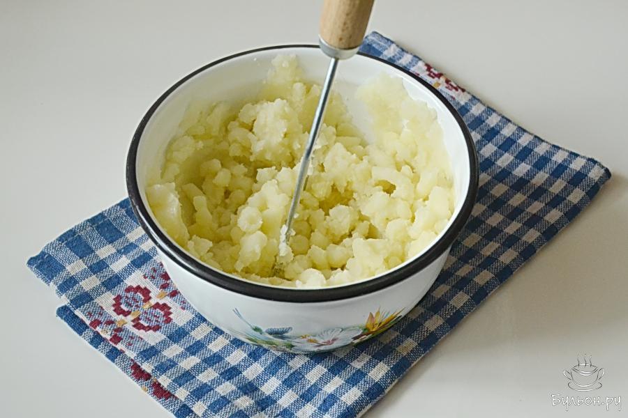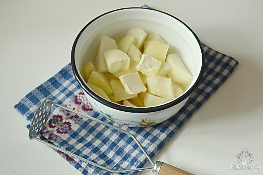 1. Начнем с приготовления начинки. Почищенный и нарезанный кубиками картофель отварим до готовности в чуть подсоленной воде.