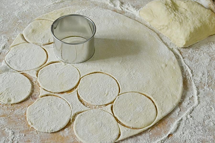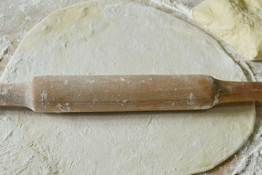 8. По частям будем раскатывать тесто в пласт. Поверхность стола будем подсыпать мукой, чтобы тесто не прилипало.