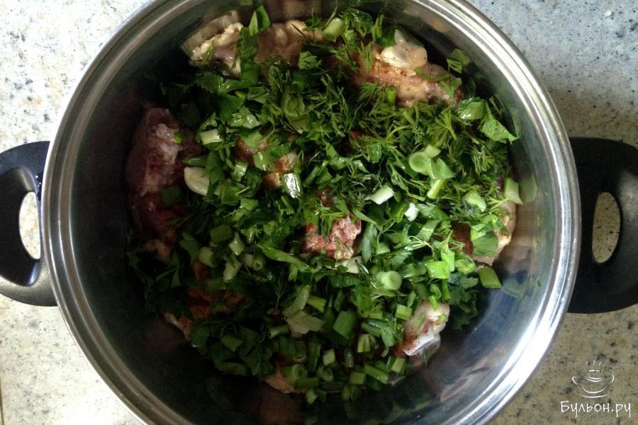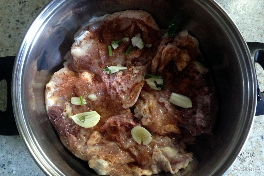 5. Залить кефиром. Так же, слоями, выложить оставшееся мясо. Мариновать курицу минимум 1 час. Если есть время, можно и на сутки. Обжаривая на костре, важно начинать со стороны с кожей. Если готовить в духовке, то укладывать на противень нужно кожей вверх, и запекать при 200 градусах около 30 минут.