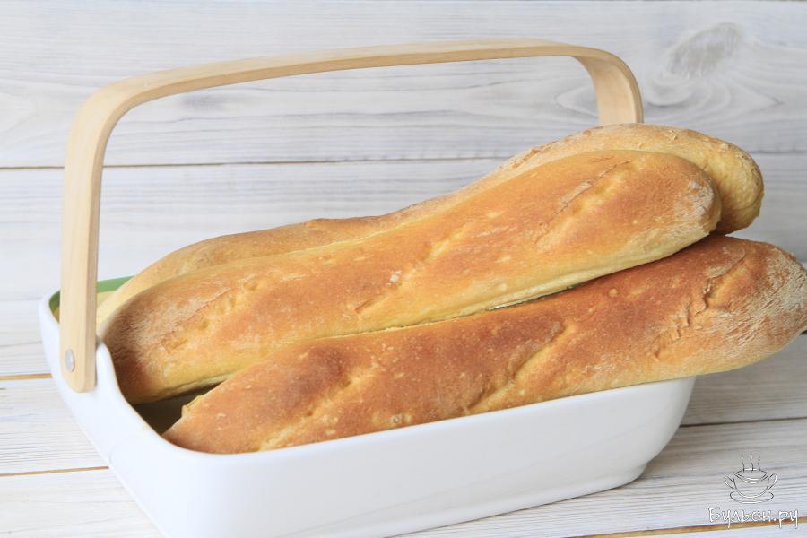 20. Первые 10 минут выпекать багеты при 230 градусах, далее уменьшить температуру и выпекать следующие 15 минут при 190 градусах. Готовые багеты слегка остудить и можно подавать к столу.