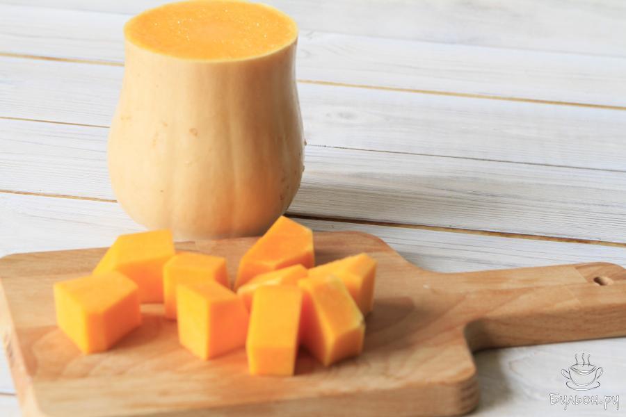 4. Тыквенное пюре нужно будет приготовить заранее. Для этого необходимо очистить тыкву, порезать ее на кусочки небольшого размера и отварить до готовности. У меня на это ушло примерно 20 минут.